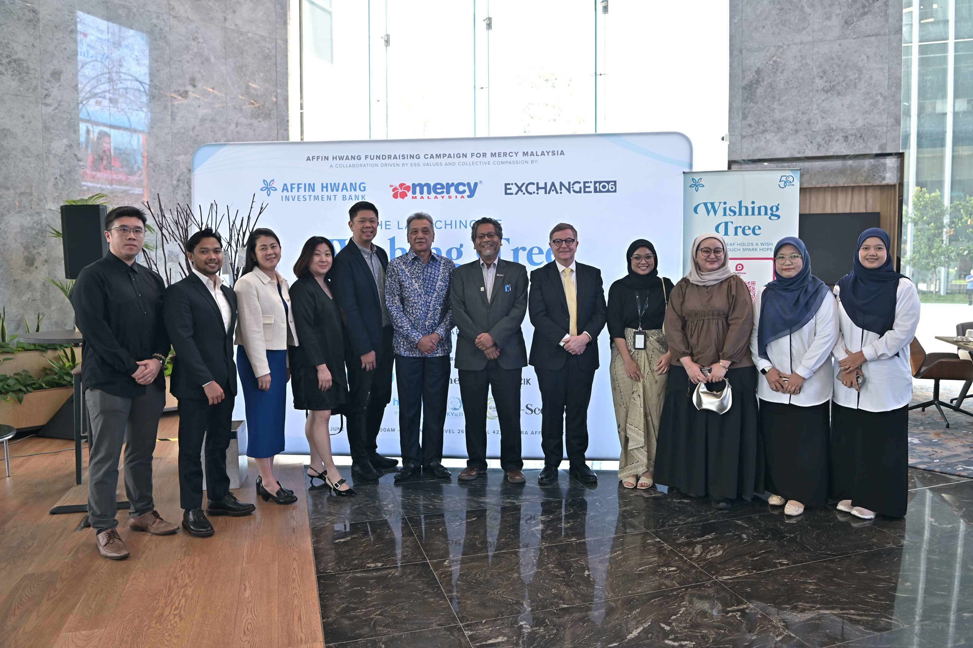 Exchange 106, in collaboration with Affin Hwang Investment Bank Berhad (AFFIN HWANG) and MERCY Malaysia, have officially launched the inaugural Wishing Tree @ Exchange 106, a meaningful initiative aimed at supporting disaster relief efforts while uniting corporate and community action. With support from a curated group of local merchants, the campaign is turning Malaysia’s tallest tower into a symbol of hope and humanitarian impact.
