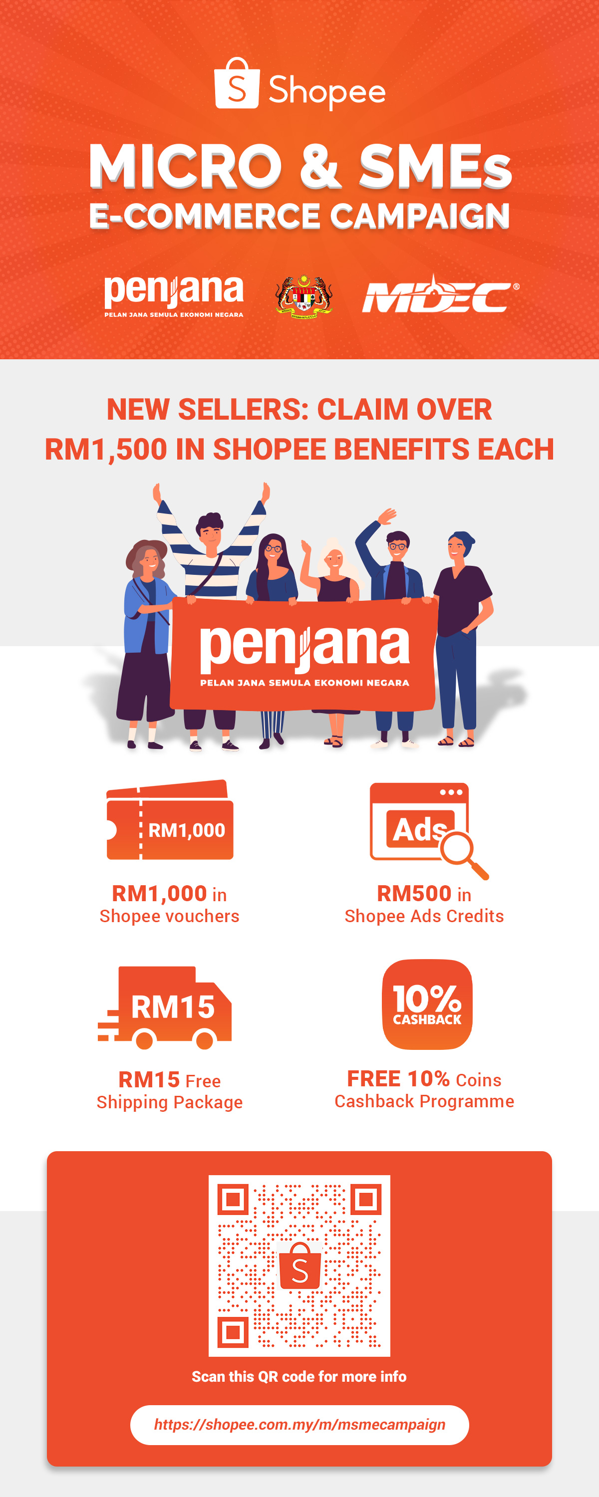 - RM500 in advertising credits which sellers can use to increase their store visibility and products on Shopee.