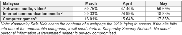 Statistics from the global cybersecurity company showed that majority of the children in Malaysia spent most of their time online from March, April and May on software, audio and video websites to search for files, which could be related to digital or e-learning during the Movement Control Order (MCO).
