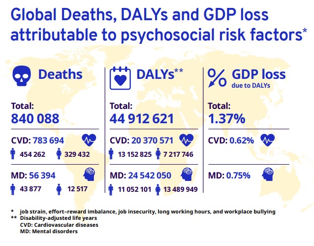 The report, titled The psychosocial working environment: Global developments and pathways for action, reveals that these risks are no longer just an “HR issue” but a primary driver of cardiovascular disease and mental health disorders, including suicide. Globally, the economic fallout is staggering, resulting in a loss of 1.37% of global GDP annually due to productivity drops and healthcare costs.